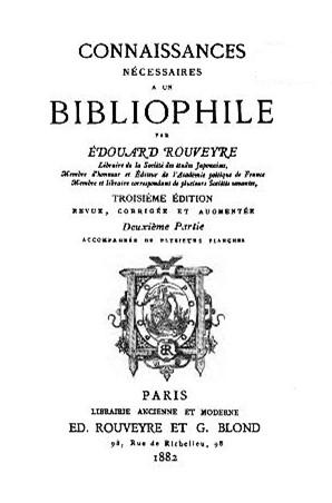 La troisième édition revue, corrigée et augmentée des Connaissances nécessaires à un bibliophile (1879-1880, 2 vol. in-8, XIV-215 et XI-193 p.) fut de nouveau publiée en deux parties, alors que Rouveyre était devenu libraire de la Société des études japonaises, dont il édita les Mémoires de 1877 à 1881.